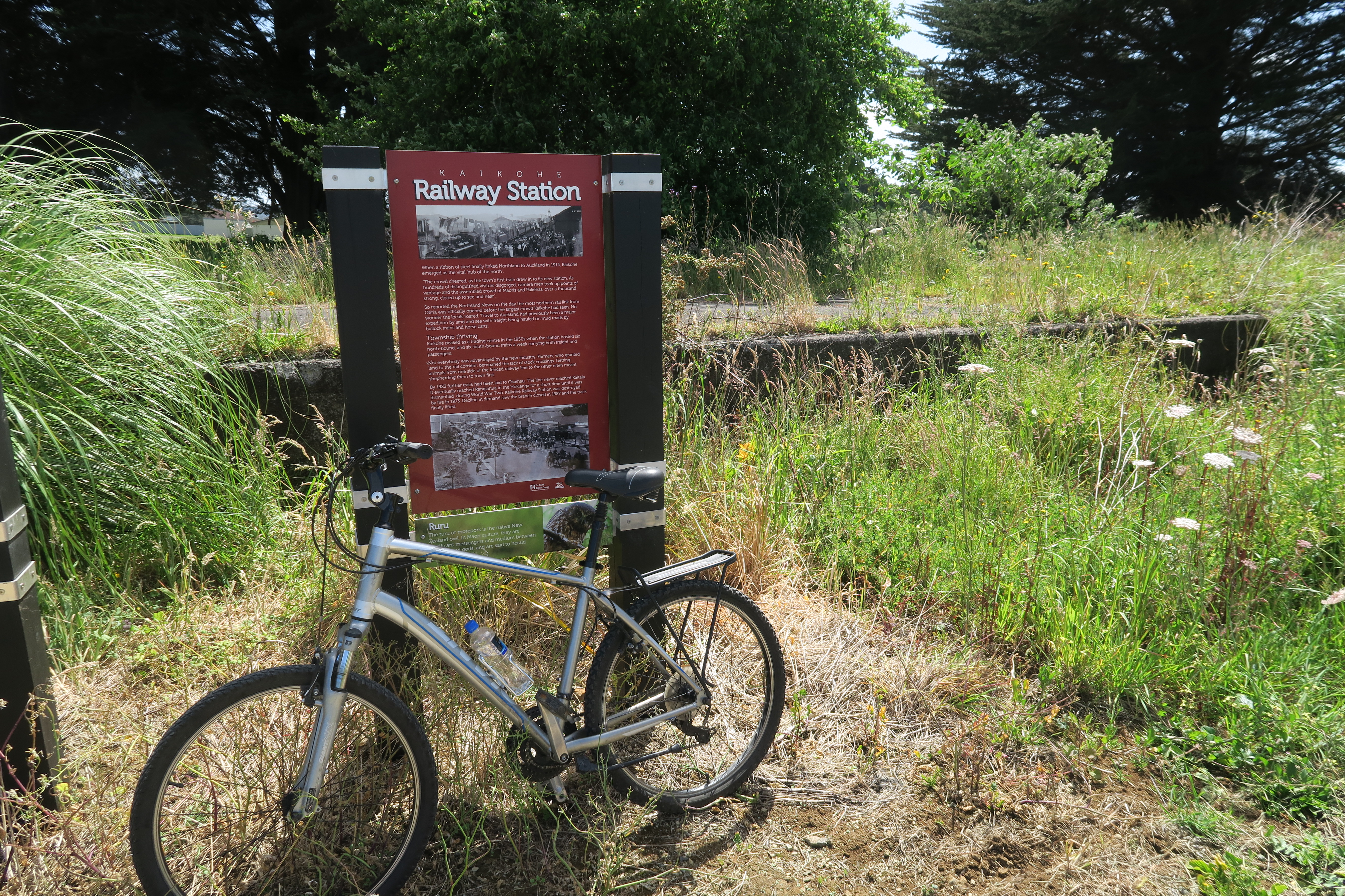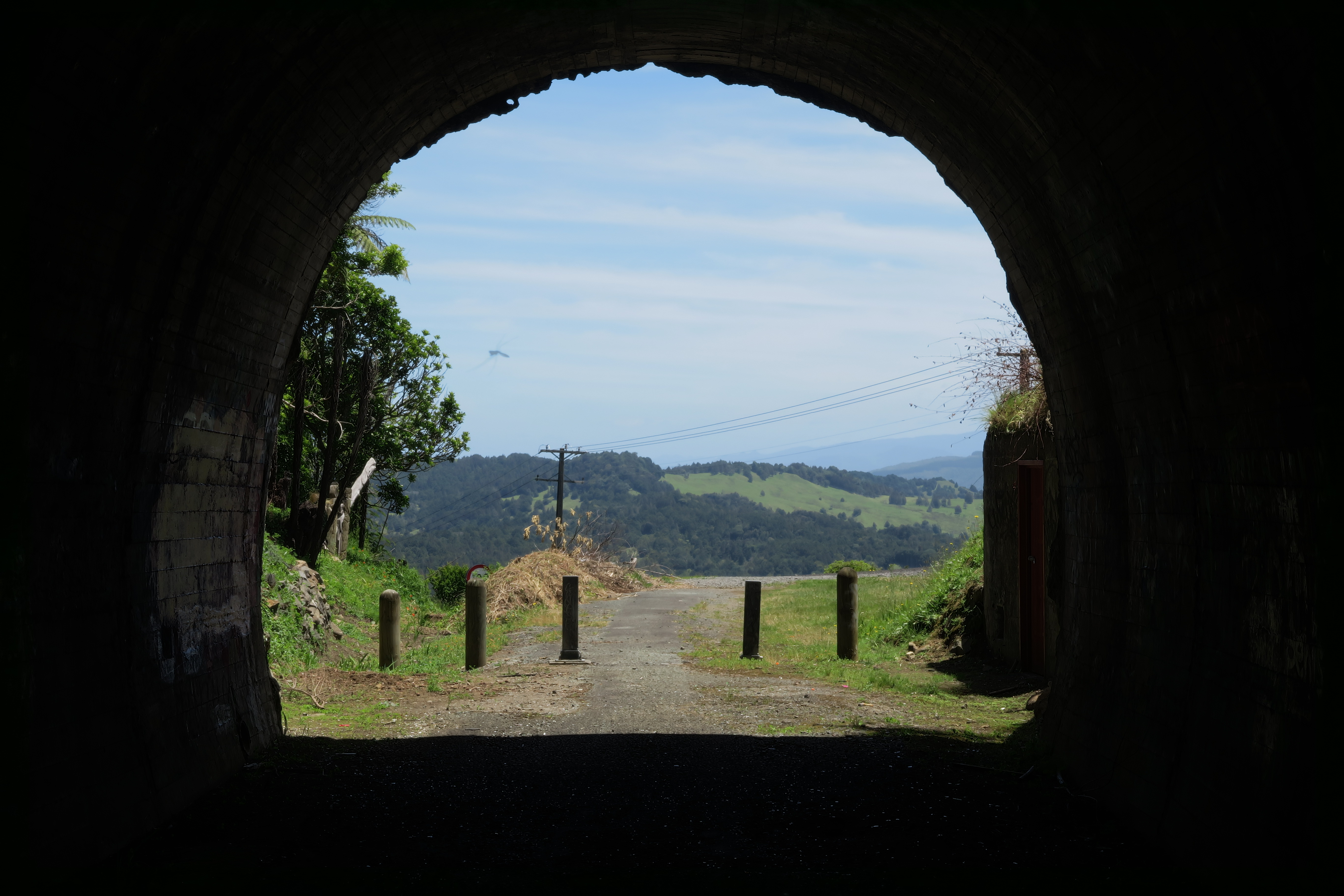 About 3 hours after starting, we had a short steep climb down, then up, to reach the Okaihau trail head. Ray said he would pick us up when we arrived, so we called him straight away and he said he would be there in about 30 mins. That gave us enough time for a quick look around (Okaihau is very small), a quick drink and icecream at the dairy (the NZ term for deli or shop), and a look at the Okaihau tunnel under the highway. Ray said the next section is even more scenic, as it follows the river, but that was enough for today. Just over an hour after reaching Okaihau, we were back in Piahai! Ray offers a great service at a reasonable price and we are happy to recommend him to anyone who doesn't have bikes or transport.