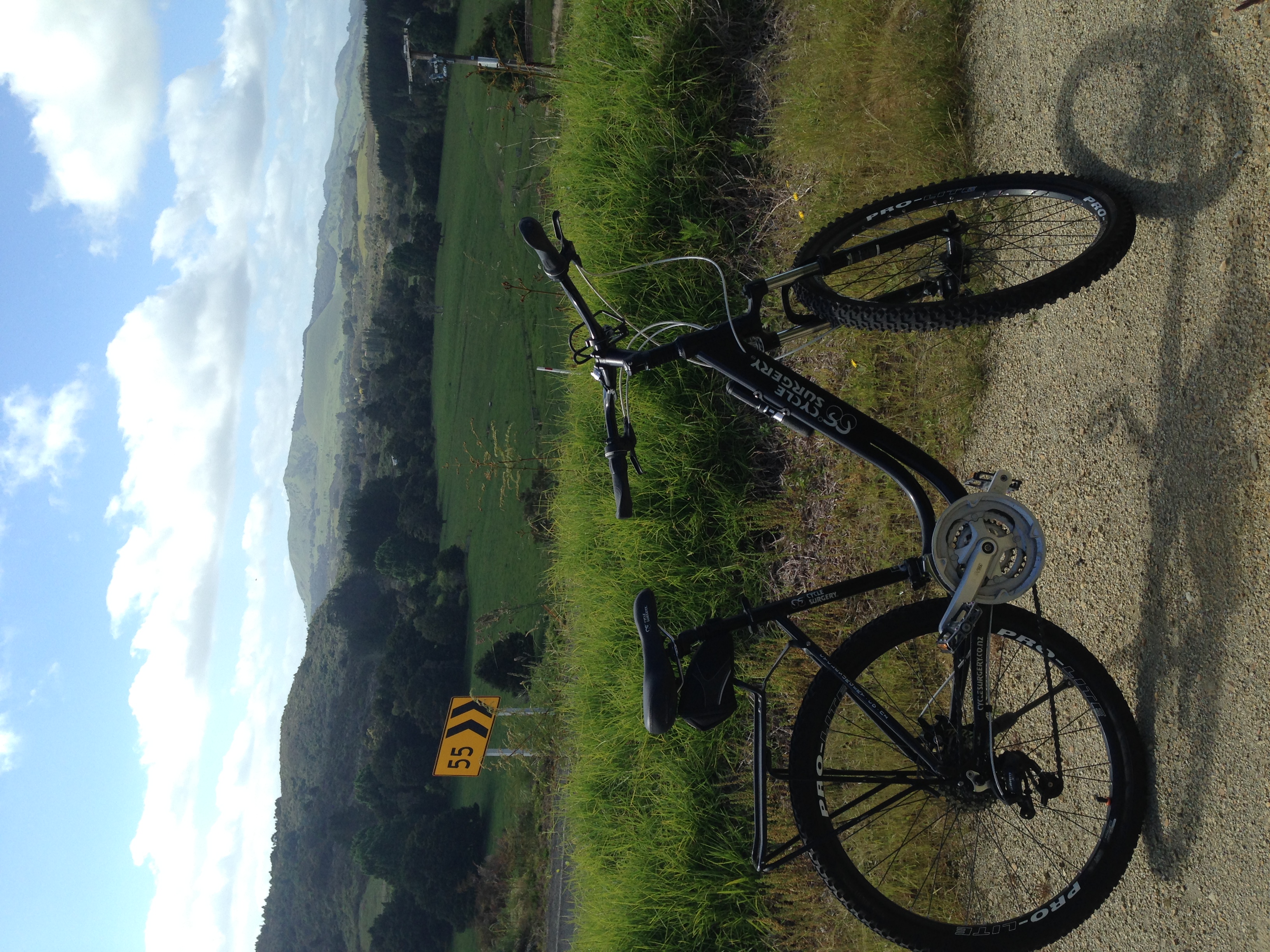Ray was at our accommodation at 9am as promised. His mini bus could seat about 10 and he had a trailer that could have taken the same number of bikes. We dropped by his shop and grabbed a couple of mountain bikes and helmets, then he took us to the south of Kaikohe, the start of our ride today. By now it was about 9.45am, so plenty of time to ride the 30km to Okaihau. The first interesting feature Ray pointed out was some extinct volcanoes in the distance - we are not in Perth now!