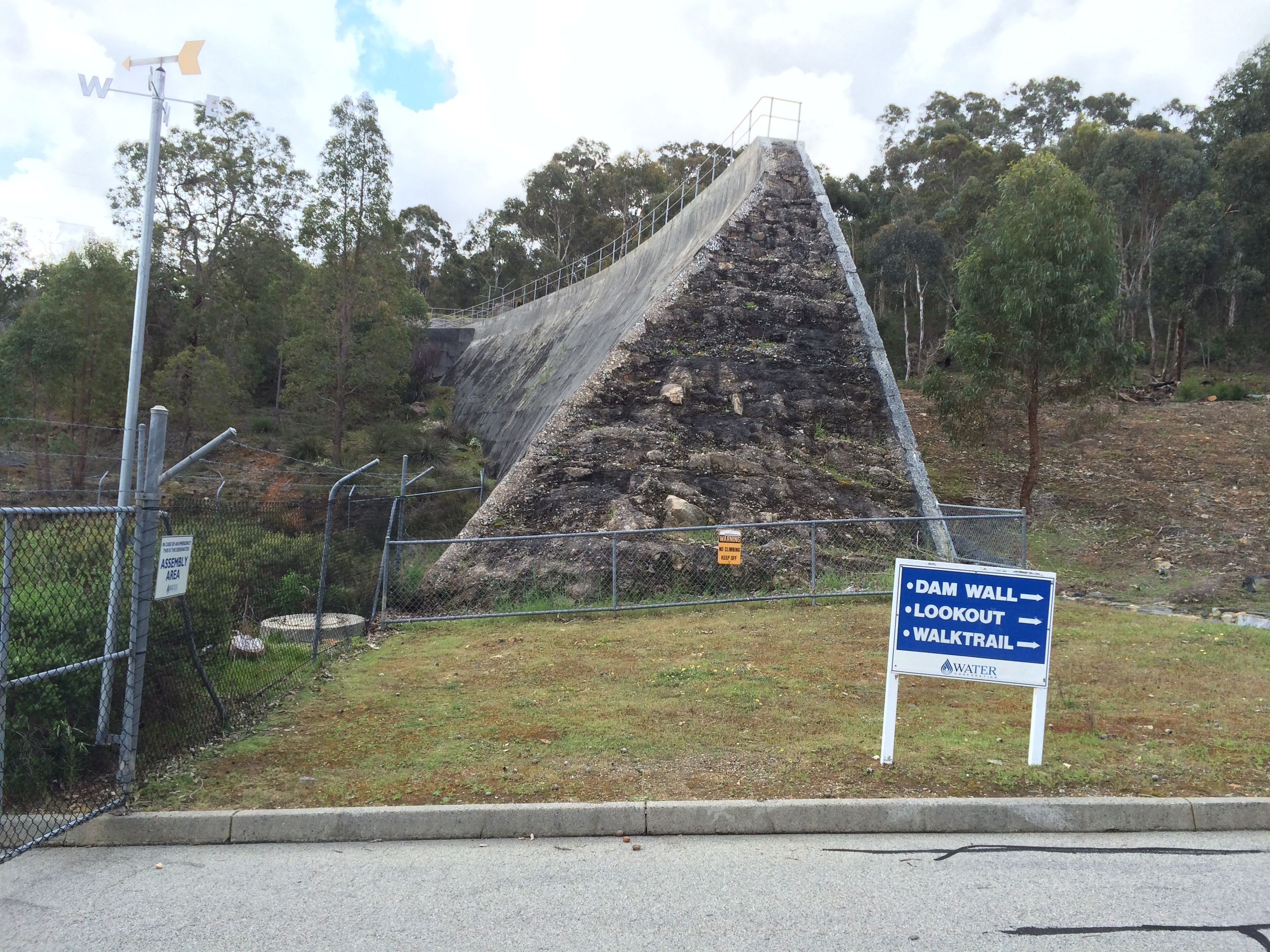 Same, same but different. Today I started at the sign for Victoria Dam on Mason Mill road. I started at 2.45pm, and very close to the start is James Weston's grave, aged 2 days old (see router sheet for exact location). I rode on to Victoria Dam. From the look out over the Dam the only way down to the new Dam is via stairs - OK when on a light bike, but it would be a hassle if you were towing a trailer up the Scarp - the sealed road for the Dam maintenance vehicles would be very, very tempting!. At the bottom of the stairs is a sign indicating the trail to Bickley Reservoir. The new Dam was interesting, but the old dam was fascinating. It has been cut in half so you can see how it was made, there is a sample of the old pipeline that carried water to Perth, the display board was interesting and the water feature was pretty. I really enjoyed it.