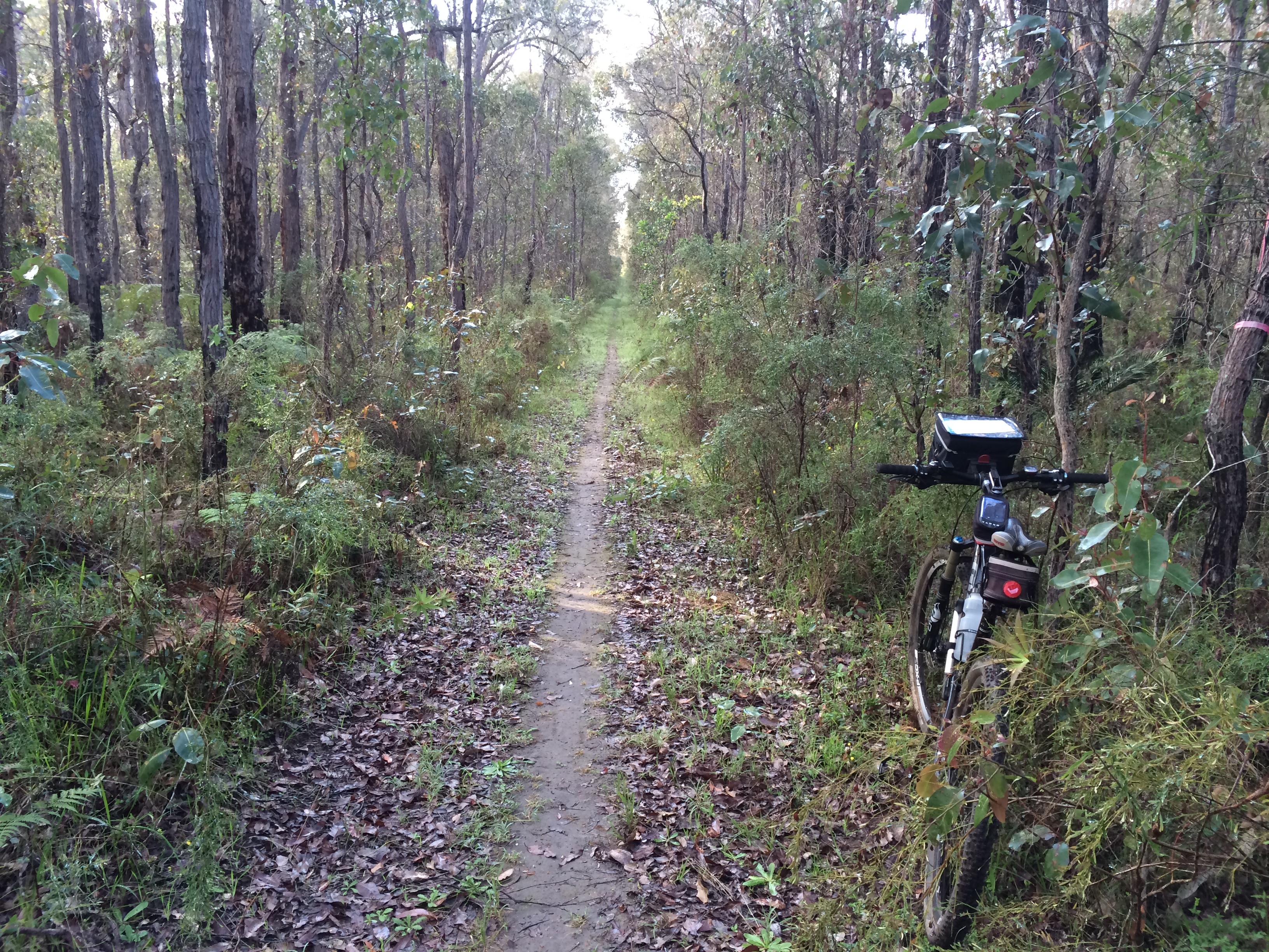 I got to Quinnup about 11.30am, but the pub didn't serve lunch till 12 noon, so I chilled till then (yes there is 3G service here). I had a burger and an iced coffee and was back on the MB by 12.30. The first couple of kilometres through the Greater Dordagup National Park are on a fire break, 5 "chains" (approximately 100m) from the side of the Wheatley Coast Road. There was one section that was blocked off with no diversion indicated, but a large recently fallen tree appeared to be the reason for the sign. It was awkward to climb over, but not impossible.