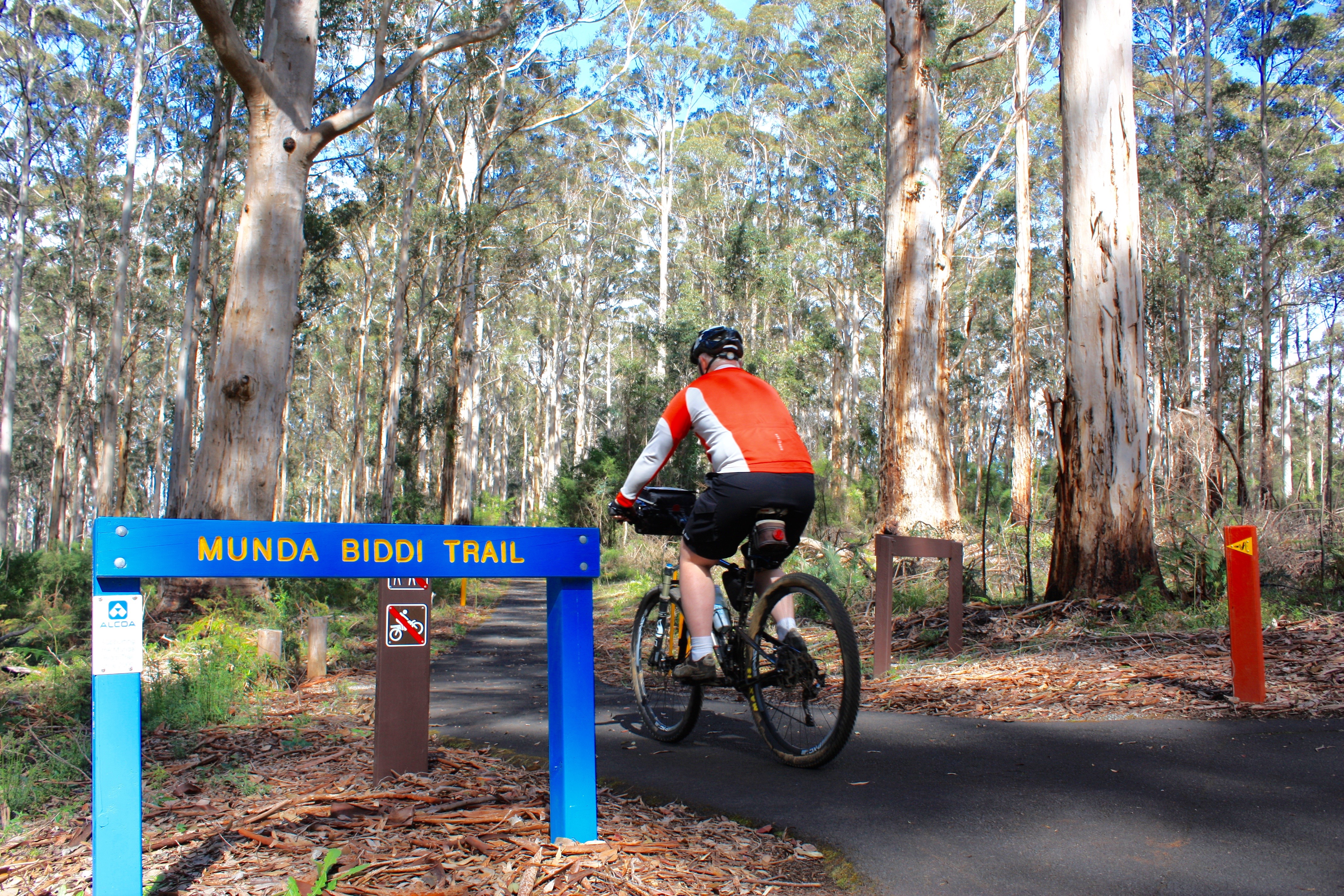 When I came through here this time last year, the South West had been hit by bad storms. This time, Perth had its hottest September day in nearly a century ( it was over 34 degrees!). I was 28 degrees in Manjimup, which made for warm riding. I was glad that the Sun wasn't at its highest, as most of the trails were in shadow. It kept me cooler, but spoilt the photos a bit as the contrast gets too much for the camera to handle.