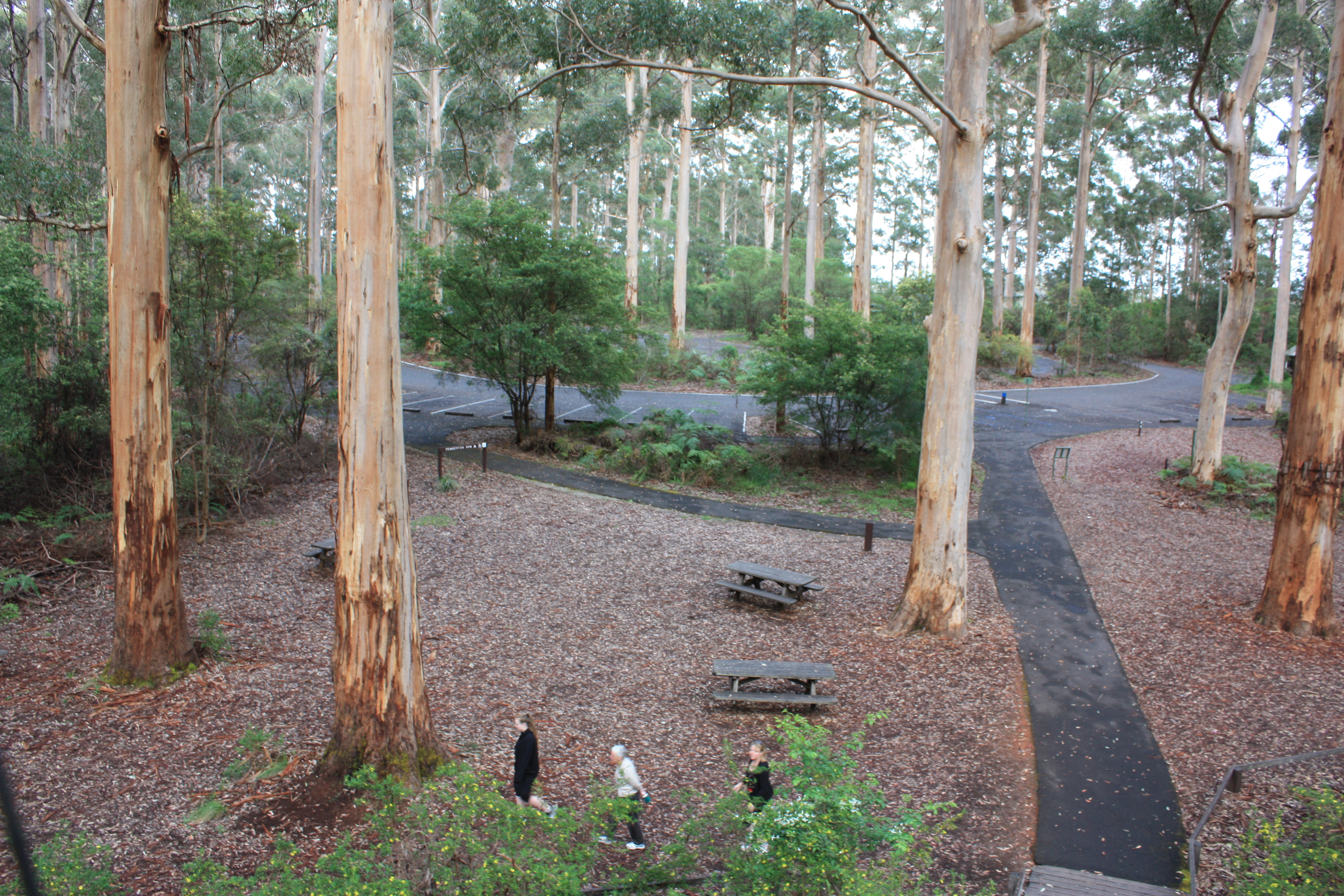 The ride off the hill into the valley behind the Gloucester tree is spectacular - it looks fabulous with the karri trees lit by the early morning sunlight, the bush is so green and lush, and full of birds. And the ride downhill is F-U-N! There are 9 switch backs, and they get closer together and steeper as you get further down - number 7 almost caught me out. After about 5 minutes of bliss, I was down on the sealed Burma Rd turning right. If you are heading up this section, especially fully laden, you can stay on Burma Rd and it comes out near the rangers hut at the Gloucester Tree. It is still a horror climb, but it is all sealed and rideable, whereas riding up the switchbacks and cornering at very slow speeds is hard.